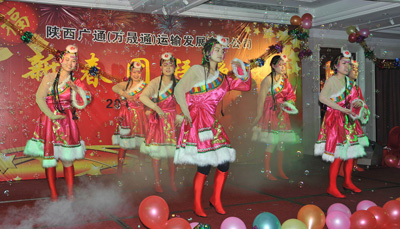 1月11日下午陜西廣通(萬晟通)運輸發(fā)展有限公司2012新春團拜會在西安湘鄂情餐廳舉行。陜煤運銷集團財務(wù)經(jīng)理和學(xué)謙、運輸中心王江、廣通公司董事長任曉鵬、總經(jīng)理沈來萬、廣通、萬晟通各分公司主管以上人員及公司先進個人近百余人參加了此次團拜會。此次團拜會除了招待晚宴外還有精彩的文藝演出與豐富的現(xiàn)場抽獎活動。