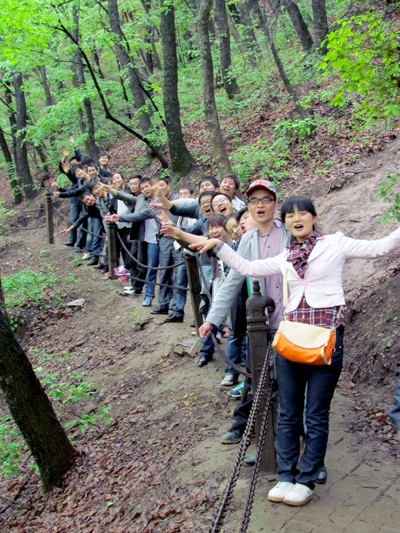 綿綿細(xì)雨并未滯留我們前往的腳步,絲絲的涼意也已沖淡旅途疲憊,一路歡聲笑語更是緩解了大家緊張的心情。到達(dá)崆峒山,遠(yuǎn)山與鄉(xiāng)村在朦朧中忽隱忽現(xiàn),層層疊疊相得益彰,儼然一副唯美的雨中山水畫卷,讓人如癡如醉。我們的隊伍沿山路拾階而上,陡峭的石階,在巍峨的大山上時隱時現(xiàn),既是對攀登者勇氣的挑戰(zhàn),又是人生理想的誘惑,大家一路上相互扶持,相互幫助,沒有讓一名同事掉隊。最終,在大家共同的努力下,我們最終戰(zhàn)勝了巍峨的大山,站在山頂盡情吶喊,高聲歡呼。此次登山活動使我們整個團(tuán)隊?wèi)?zhàn)勝困難、勇往直前的勇氣得到了很大的增強,相信在以后的工作中我們能戰(zhàn)勝更多困難。