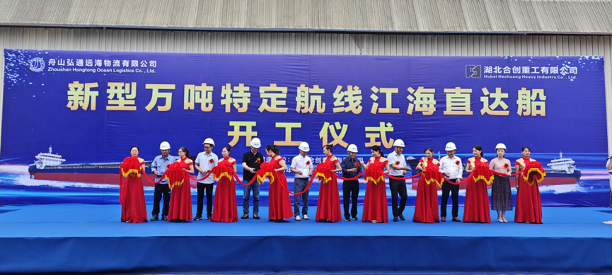湖北合創(chuàng)重工舉行舟山弘通遠海物流新型萬噸特定航線江海直達船船建造開工點火啟動儀式。舟山市港航和口岸管理局、舟山弘通航運發(fā)展有限公司、湖北合創(chuàng)重工有限公司等主、承、協(xié)辦單位領導、各工程項目單位代表、部門成員共計50余人參加儀式。